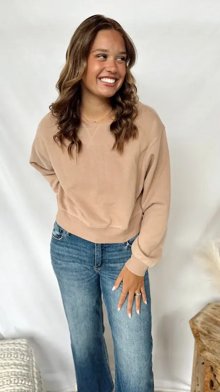 The Jacie Sweatshirt brings a fresh twist to your cozy favorites with its soft fabric and playful cut-out collar. Perfect for layering or lounging, it combines comfort and a little edge to brighten up your everyday style. Easy to wear and hard to resist!